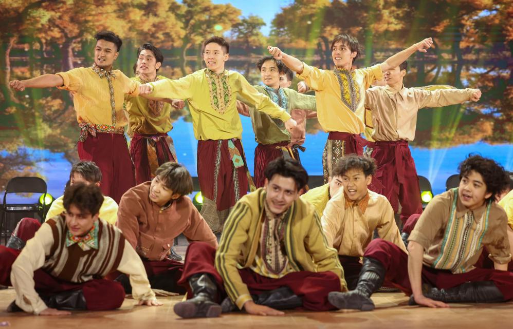新疆艺术学院学生表演舞蹈《阳光下的麦盖提》(2023年3月20日摄)。新华社记者 胡虎虎 摄