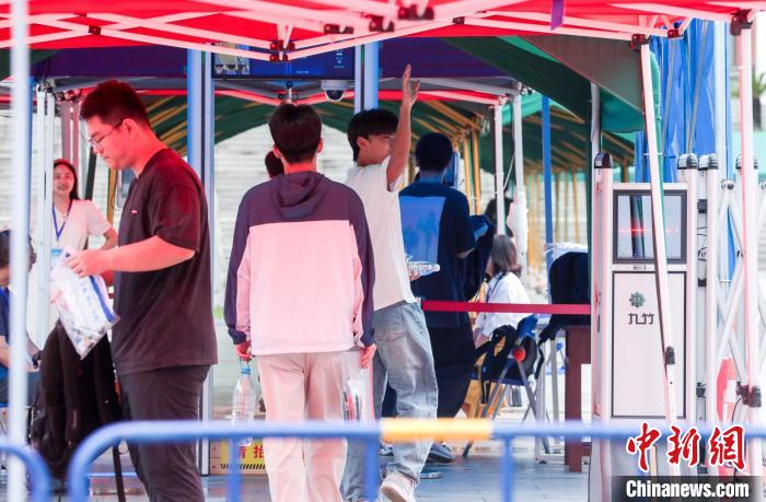 6月7日,考生前往广州天河中学考点。当日,2025年高考大幕开启。中新社记者 陈骥旻 摄