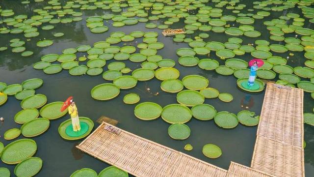 每年6月至次年2月是版纳植物园的王莲最佳观赏期,不少游客都会慕名前来,观赏这种神奇的植物。