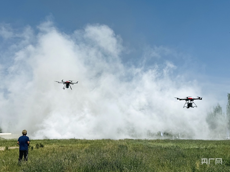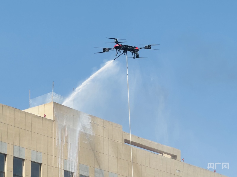 演练现场,无人机正在灭火(央广网记者 刘晓祺 摄)