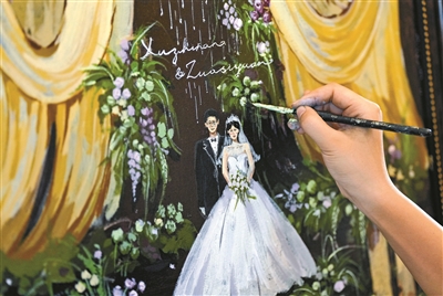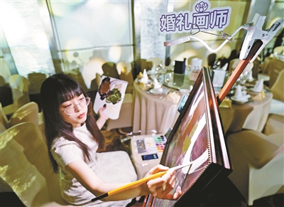 北京青年报记者注意到,随着客户需求量的不断增加,当下越来越多的美术专业人士及绘画爱好者,开始涌入这个行业新赛道。业内预计,随着“个性化婚礼”需求激增,未来3年行业规模增速将超50%。多地人社部门也已将“婚礼绘画师”纳入新兴职业培训目录,提供技能补贴与创业指导,加速行业规范化发展。