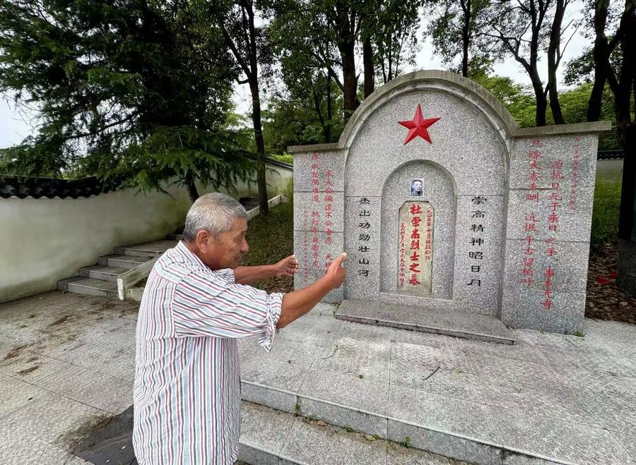 新华社武汉6月19日电(记者龚联康)在武汉黄陂姚家集街道,村民陈金国为抗日烈士杜崇杰守墓长达59年的故事广为流传。今年以来,当地政府多次派人前往烈士故乡走访和收集资料。6月11日,一张质朴庄重的黑白复原像被贴到杜崇杰的墓碑上,72岁的陈金国终于“见到”了这位自己默默守护多年的抗日英雄。