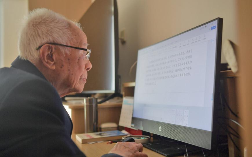 养老院的房间里,黄石文大多数时间都是一个人安静地坐在桌前。桌上放着一台电脑,手指已经不灵活了,打字很困难,他对着屏幕一字一句说出自己一生的经历,电脑再把他的讲述转成文字。