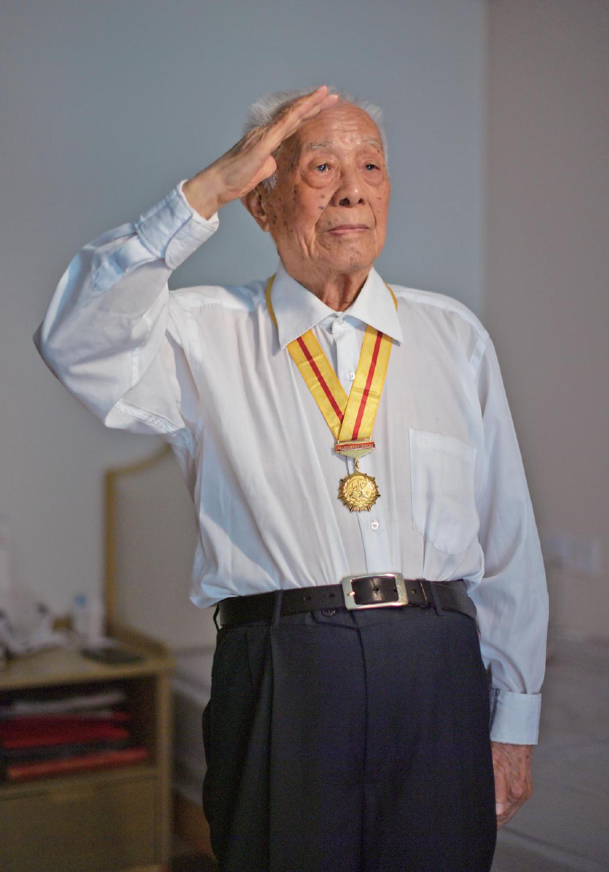 98岁,头发花白,走路要拄拐杖,但他始终把上身挺得直直的。