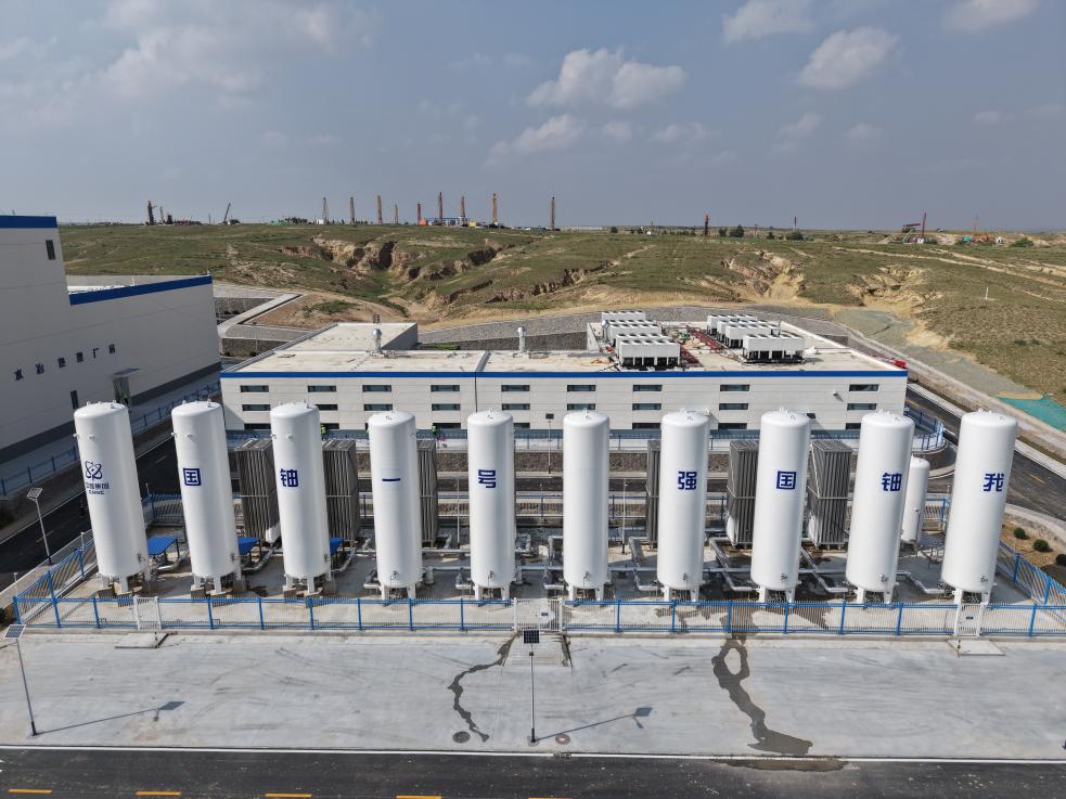 图为“国铀一号”示范工程地浸铀矿山氧气和二氧化碳气体罐。(中核集团供图)