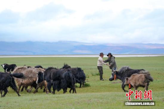 7月22日,在西藏阿里地区普兰县霍尔乡玛旁雍错湿地,牧民在放牧时交流。为实现更大的经济效益,霍尔乡近年来探索建立牦牛养殖专业合作社,按当地自然条件合理分配牦牛放牧地点,并将牛奶进行加工销售,2023年该合作社的年总收入达到60余万元人民币,带动牧民人均增收2万余元人民币。