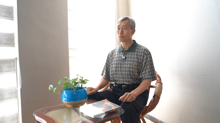 镇边城村民、老党员傅贵林在“怀来县第一个农村党支部”旧址讲述当年的故事。