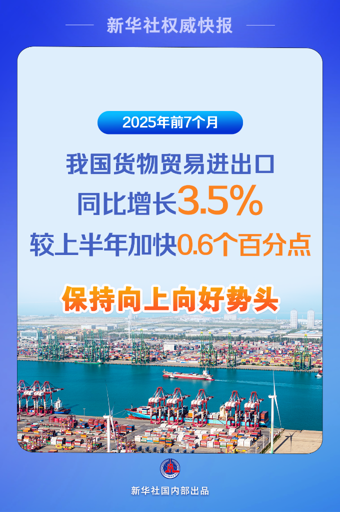 来源标题:同比增长3.5% 前7个月我国外贸保持向上向好势头