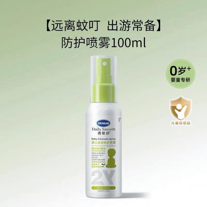 “德敏舒旗舰店”内,德敏舒婴儿香茅防护喷雾宣传显示“远离蚊叮”字样。 购物平台截图