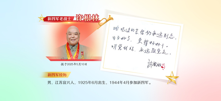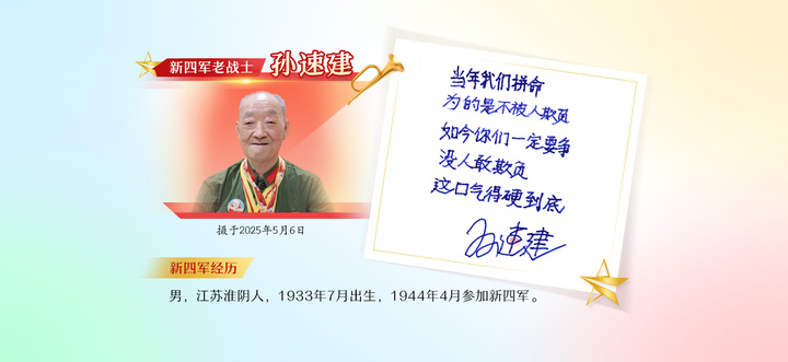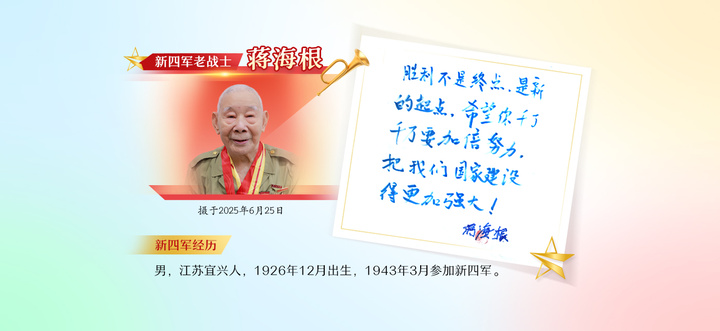 时光悠悠,曾经豪情满怀的新四军战士,变成响水县老百姓口中的“老周爹”。再忆烽火岁月,老人心中有感慨、有光荣,更多的还有对新时代青年的期待。“其实,爱国不只轰轰烈烈,还有纯纯粹粹。青年人要在中国特色社会主义的青春赛道上奋力跑出最好的成绩!”