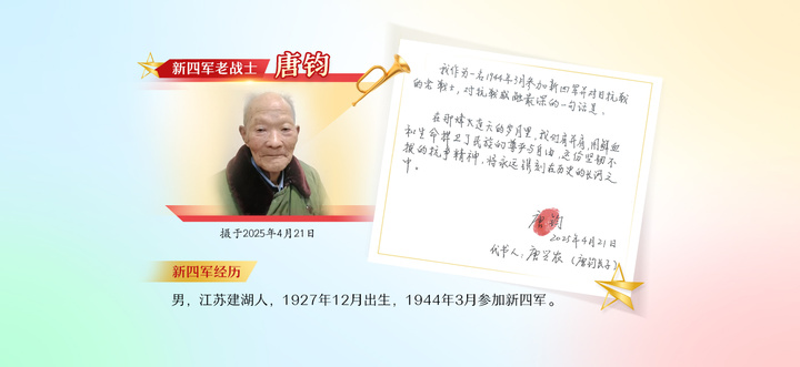 80年后,前行路上,如何从新四军的红色基因中汲取强大力量?新华日报·交汇点新闻派出多路青年记者,组团寻访80位百岁新四军老战士,重磅推出《归来仍是少年》系列融媒报道。每期由8位老战士联袂讲述,在一个个动人故事里记录历史,在一句句深情寄语里共绘未来,弘扬“初心不改,归来仍是少年”的主题精神,激励我们不断攻坚克难,书写中国式现代化建设风华正茂的新诗篇。