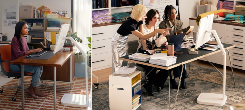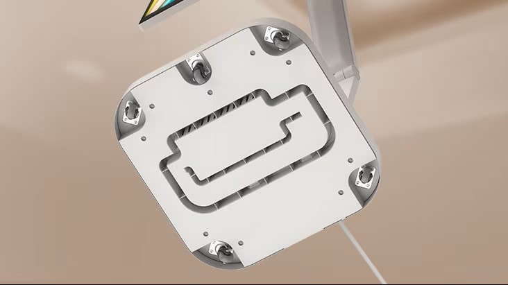 加厚方形底座稳固可靠,简约灰白色外观能无缝融入家庭与办公环境,兼顾实用与美学。底部的高强度滚轮,可实现自由移动,滑行顺畅又稳定。隐藏式电源适配器设计,有效收纳线缆,保持桌面整洁有序,营造出清爽的工作和生活空间。