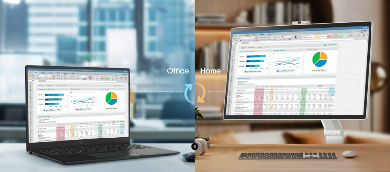 Swing移动屏内置的 LG webOS 系统是强大的智能核心。借助 Remote PC 功能,webOS能助力用户远程连接本地电脑或云电脑。即便没有实体 PC,用户也能轻松使用视频会议、云端办公软件等多种远程办公服务,为居家办公带来更轻便、高效的体验。