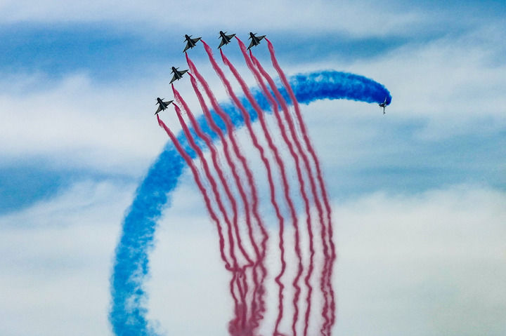↑9月19日,空军八一飞行表演队进行飞行表演。新华社记者 颜麟蕴 摄