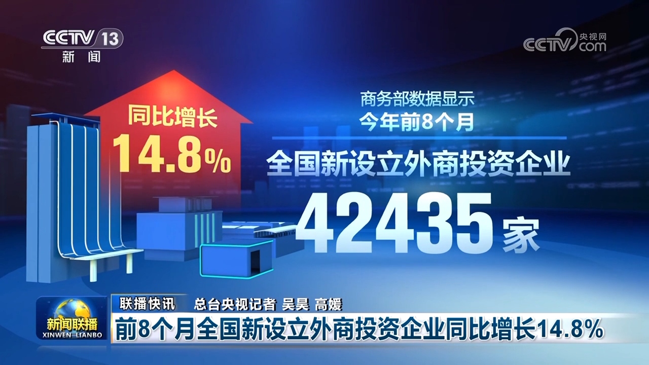 9月21日《新闻联播》报道,我国消费市场平稳增长、海洋产业持续做强做优、前8个月全国新设立外商投资企业同比增长14.8%……多领域燃动活力引擎,中国经济稳中提质。