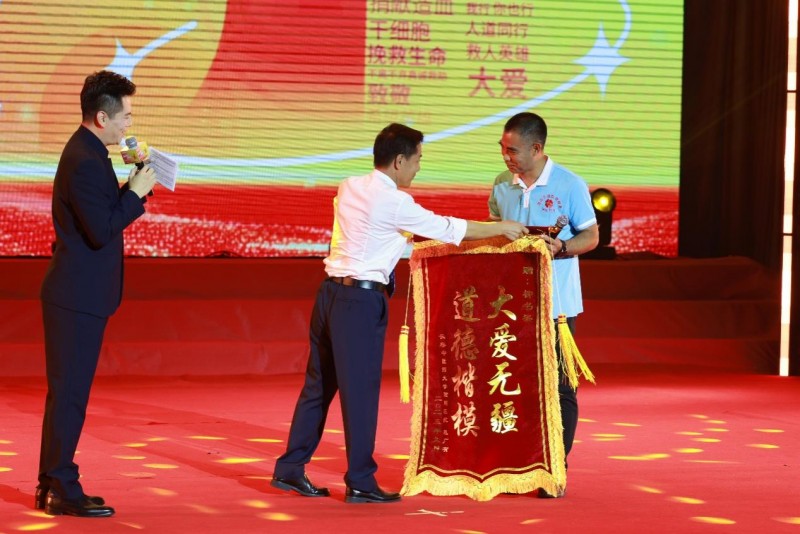 其中,柳书梁不仅累计献血8.6万毫升,还参与应急救援、登记器官捐献,活动现场他与受捐者赵广有相见,赵广有送上“大爱无疆,道德楷模”锦旗,柳书梁则以公益马拉松奖牌回赠,见证这段跨越山水的生命缘分。