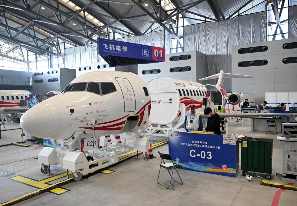 9月20日,选手在飞机维修项目比赛中。新华社记者 李嘉南 摄