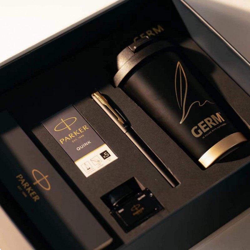 回溯发现,不少令人印象深刻的礼盒案例都出自格米。比如与派克合作的高端商务礼盒——钢笔与杯壶的组合,传递“握笔,执杯”的儒雅气质。