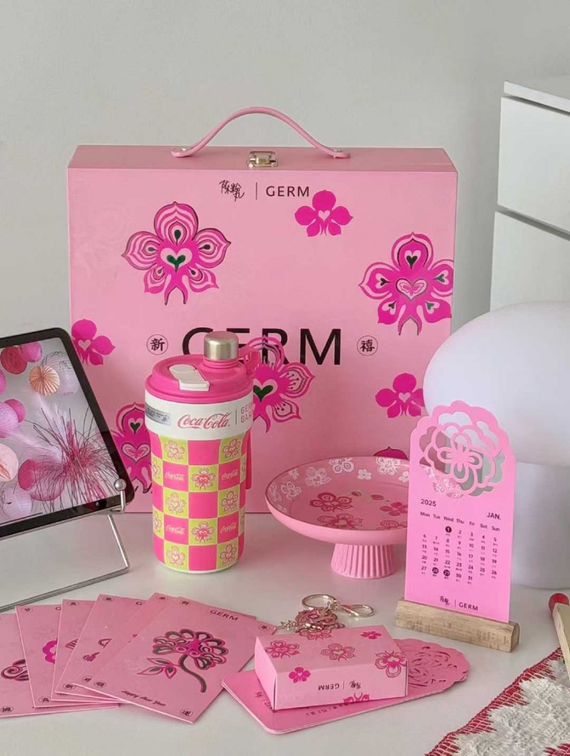 再比如携手90后顶级剪纸艺术家陈粉丸,联名推出的新年礼盒中除了保温杯,还配有红包、高脚瓷盘、挂件,把传统民俗之美与现代生活巧妙融合;以及女神节的“春日琦想”礼盒,原创山茶花保温杯搭配真丝发圈、珍珠挂件,将杯壶延展为时尚配饰,让喝水这件小事更具仪式感。