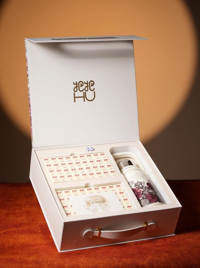 “HU个中秋夜”节日礼盒,将麻将与花卉保温杯放到了一起:麻将承载团聚乐趣,杯子送给长辈,承接温度与情意。“HU”既是麻将的胡,也是壶的谐音,更是“福”的延展,相比月饼、鲜花这类“消耗品”,格米礼盒更具长久陪伴的价值,在传递温暖与心意之余,又能够在节日过后仍旧日常陪伴,持续提醒人们关于团圆、好运与生活美学的记忆。