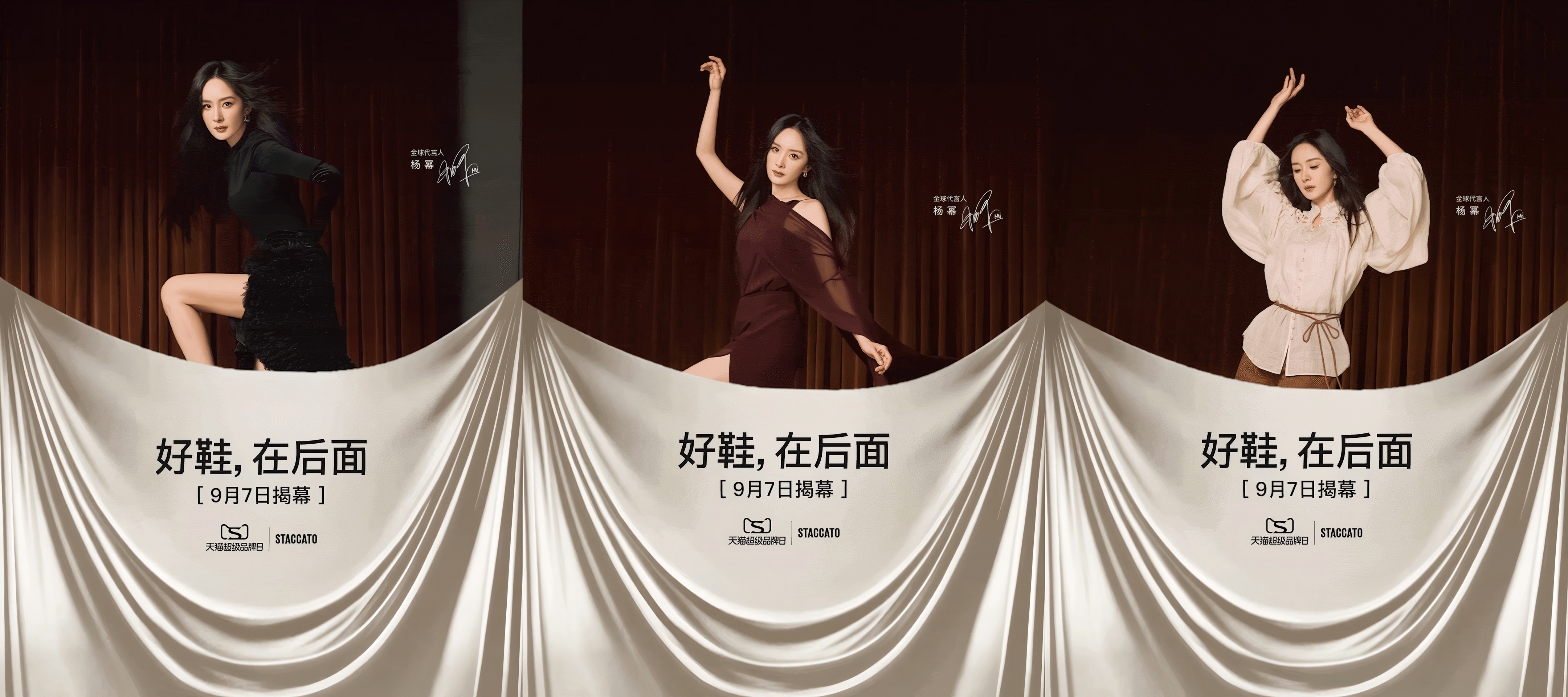品牌率先通过代言人杨幂拍摄的一组独特的创意大片,打破了传统优雅的边界诠释;随后在线下多个核心城市推出“未完成”风格的户外装置广告,以“半成品”视觉制造悬念,吸引大量消费者打卡互动。许多用户在社交媒体分享体验:“一开始是被杨幂吸引,但随着幕布缓缓滑落,才发现——好鞋真的在后面!”