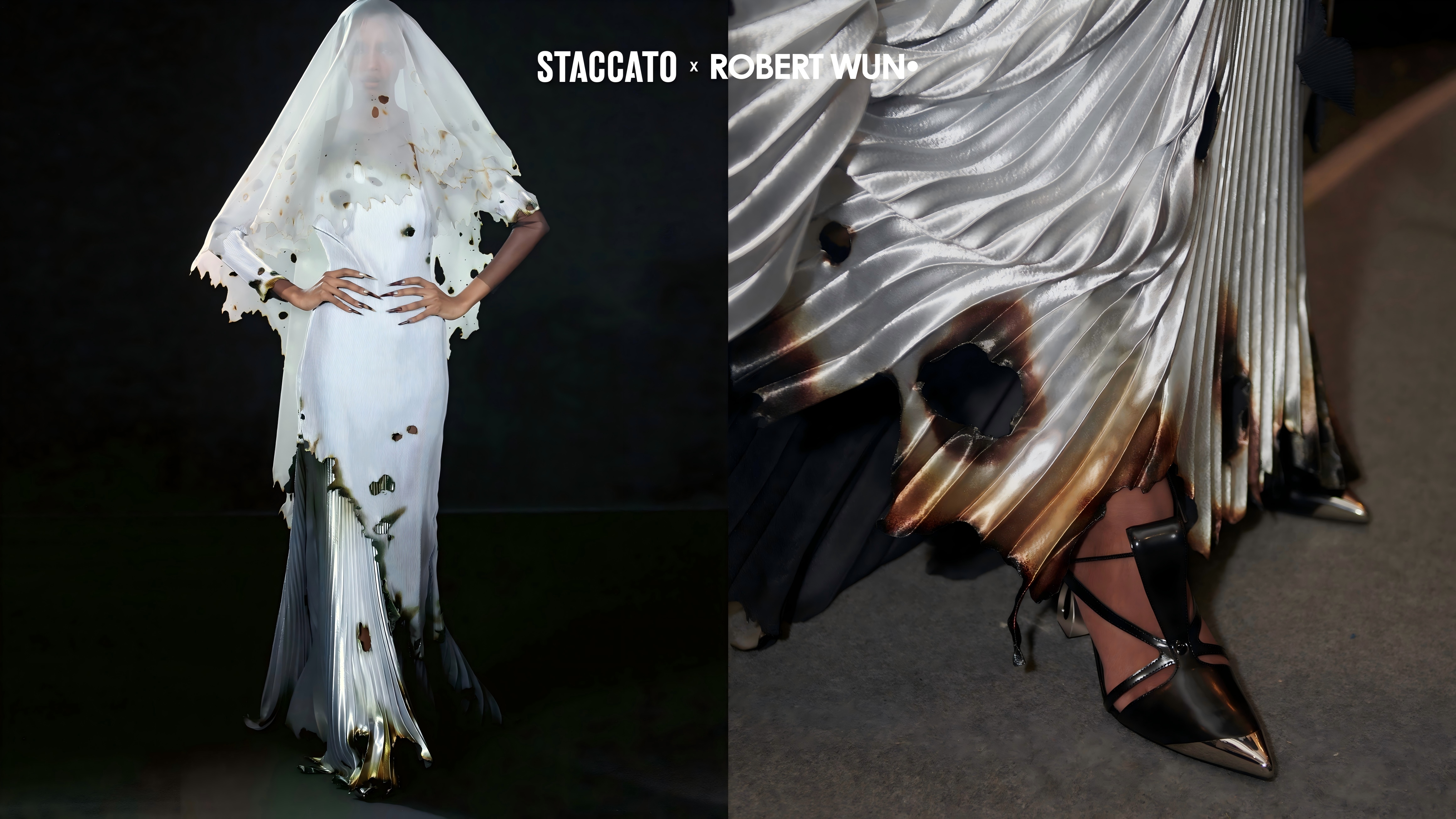 海外拓展是另一重要引擎。目前,STACCATO已布局东亚市场。值得一提的是,品牌频繁亮相国际时装周,通过高端时尚场合传递品牌理念。自品牌成立以来,已多次登上巴黎国际时装周及纽约国际时装周的官方日程。2023年,STACCATO与“鬼才设计师”ROBERTWUN合作推出“铠甲花朵”联名系列,首次登陆巴黎高定时装周闭幕大秀,引发国际关注。