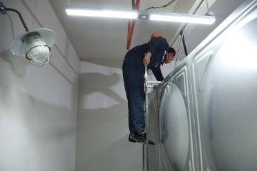 工程团队对配电室、水泵房、发电机等关键设备开展了专项检查,确保假期水电正常供应;电梯五方通话系统已完成测试,困人情况可实现5分钟快速响应。园区管道已完成疏通清掏,高频返水点位提前改造;监控设备全覆盖,录像存储不少于30天,夜间画面清晰稳定,为园区安全再添一道“智能防线”。