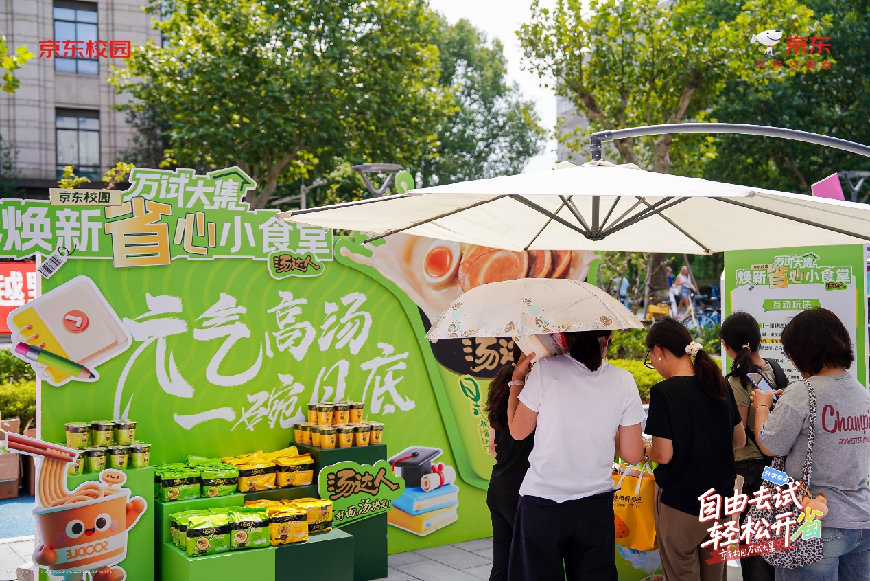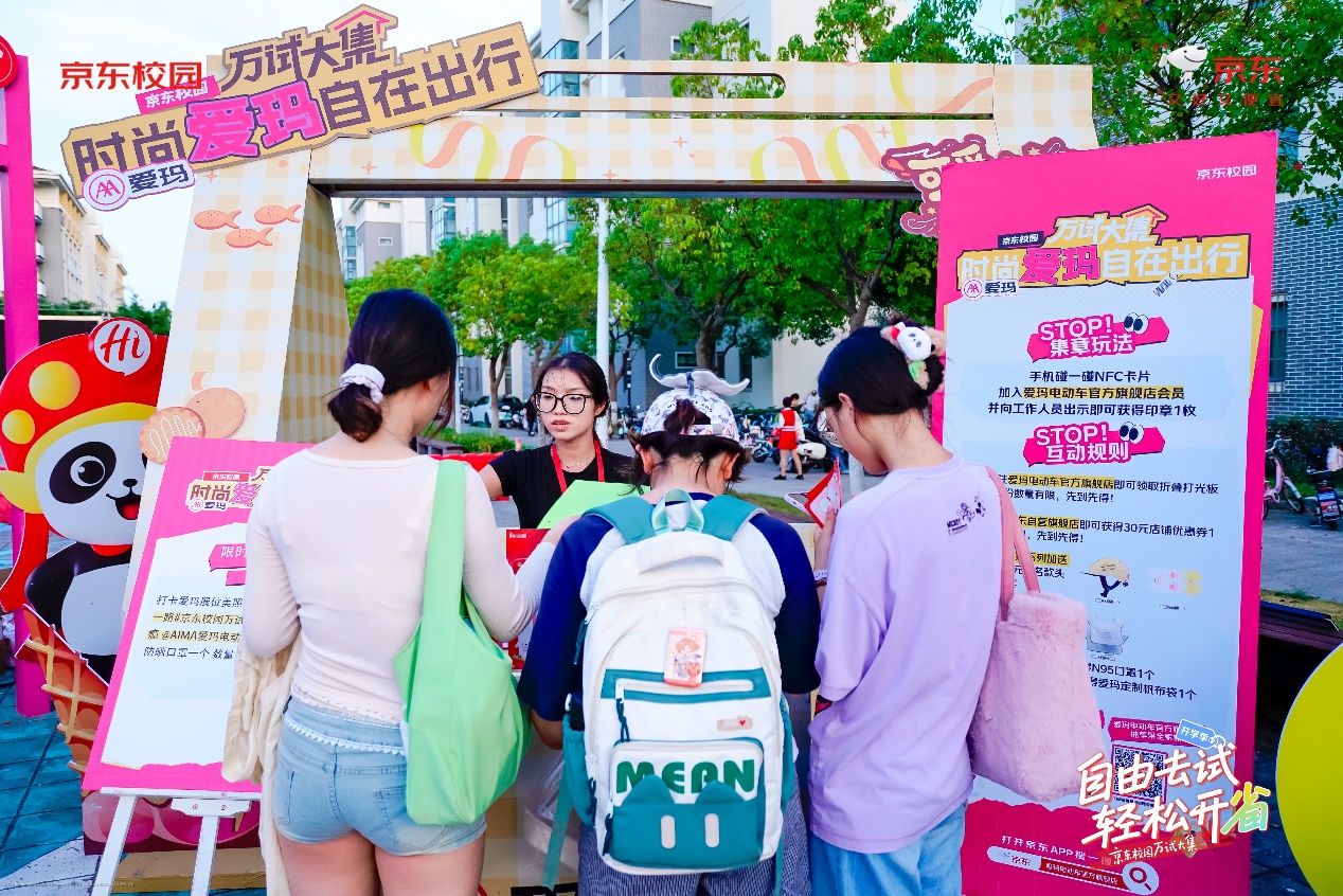 华东线路深入上海中医药大学、复旦大学、上海海洋大学、上海交通大学、南京师范大学、仙林大学城、宁波大学、南京林业大学、中国药科大学、东南大学10所高校,京东校园联合海底捞、漫步者、统一汤达人、爱玛、泰坦军团、6大家居品牌及头戴耳机品类品牌共17 个品牌,覆盖学生“住、行、玩、吃”全场景。
