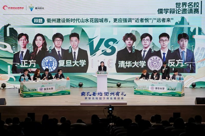 经过前期的激烈角逐,复旦大学和清华大学脱颖而出,成功站上了决赛的舞台。双方围绕【衢州建设新时代山水花园城市,更应强调"近者悦"/"远者来"】这一话题展开辩论。衢州,这座承载着千年儒学文脉的“东南阙里”,不仅是孔氏南宗文化的发源地,更是中国东南儒学走廊的核心枢纽。这座城市自古以来便沐浴在儒家思想的熏陶之下,积淀了深厚的文化底蕴。双方选手引经据典,让这座城市的文脉与历史,在一句句辩论词中缓缓向观众“走来”。