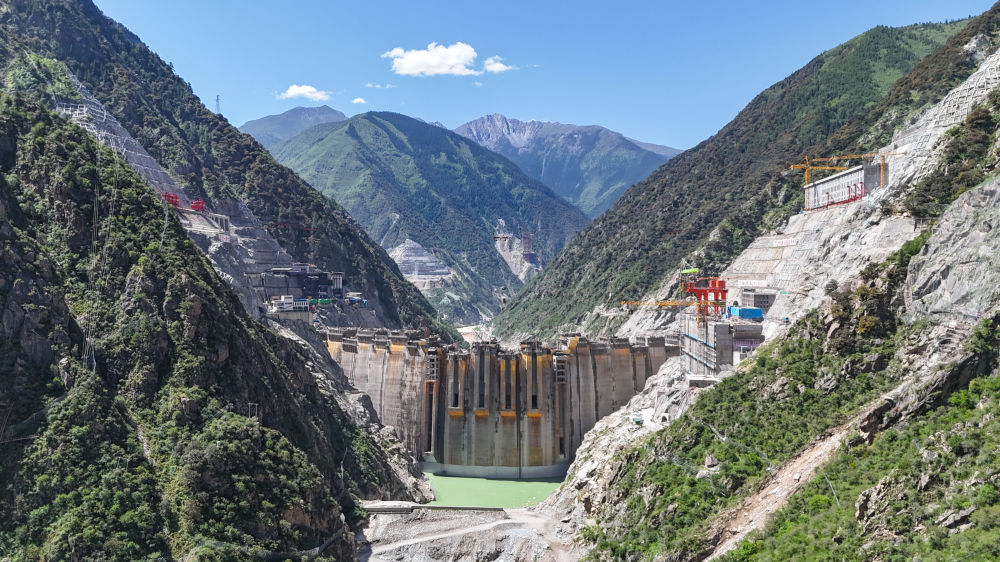这是2025年6月30日拍摄的建设中的叶巴滩水电站(无人机照片)。新华社发(陈浩 摄)