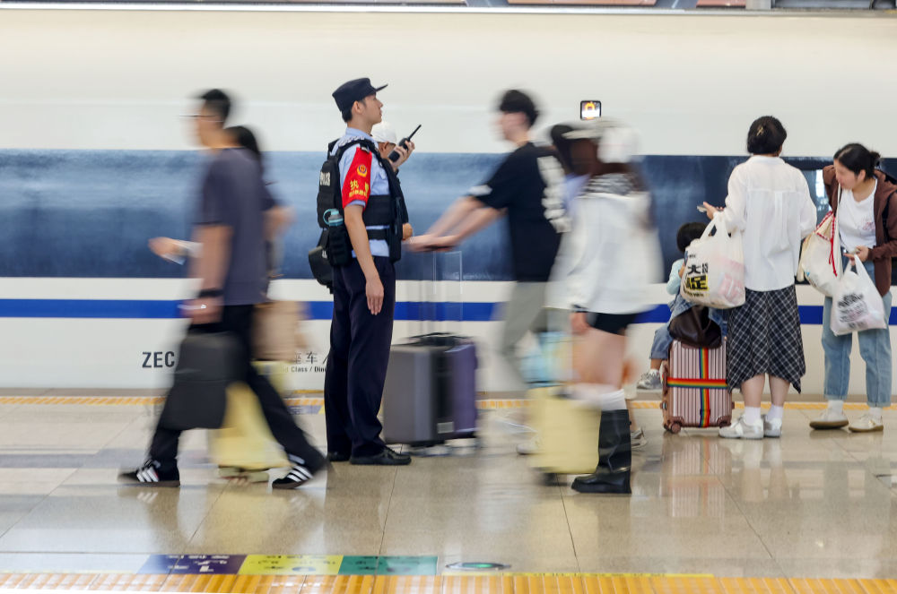 在站台上,G4196次列车即将出发,开启旅程。乘警长刘祎进行出发前的最后准备,从检查消防设备到站台治安巡视,每一个细节都一丝不苟。“每逢佳节倍思亲。作为乘警,我们也有家人,但我们更明白自己所肩负的职责与使命,越是在这样的时刻越需要我们的守护。”他说。