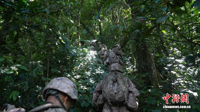 图为巡逻官兵穿越密林区。付丽豪 摄