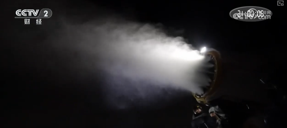 受冷空气影响,新疆阿勒泰可可托海滑雪场内温度与湿度均达到理想造雪条件。滑雪场内,工作人员连接好管道,打开阀门,调试完参数,白色雪雾从“炮筒”中喷涌而出,迅速在山间铺展开来。