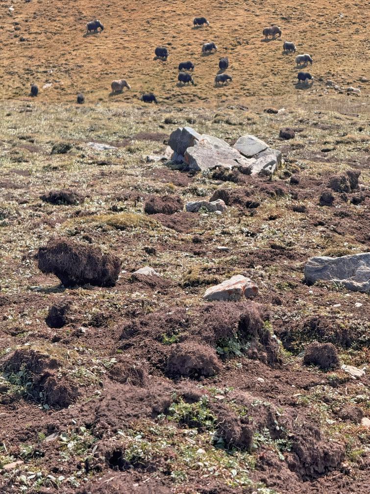 周鹏在和牧民的访谈中也多次听到这一情况。他认为,如果熊长期依赖人类食物和垃圾,对啮齿类种群的生态调节作用可能减弱,从而导致啮齿类动物数量增加,进而对草场结构和植被覆盖造成负面影响。在青藏高原以群落结构相对单一、物种丰度较低的生态系统中,这种干扰可能削弱生态系统的稳定性与功能完整性。