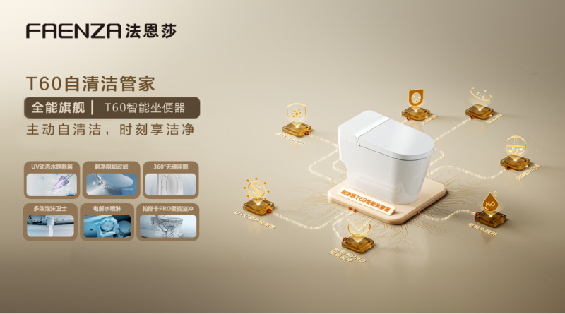 另一款 T60 智能坐便器则升级全链路动态自洁科技,以 “T60 自清洁管家:全域净菌,守护健康”为核心主张。其自洁覆盖座圈、水路、洗护、水封、内壁、除臭六大核心环节。让洁净渗透使用全场景,以自动防护姿态,让净菌成为 “无感却安心”的日常,为用户带来全天候的洁净舒适体验。