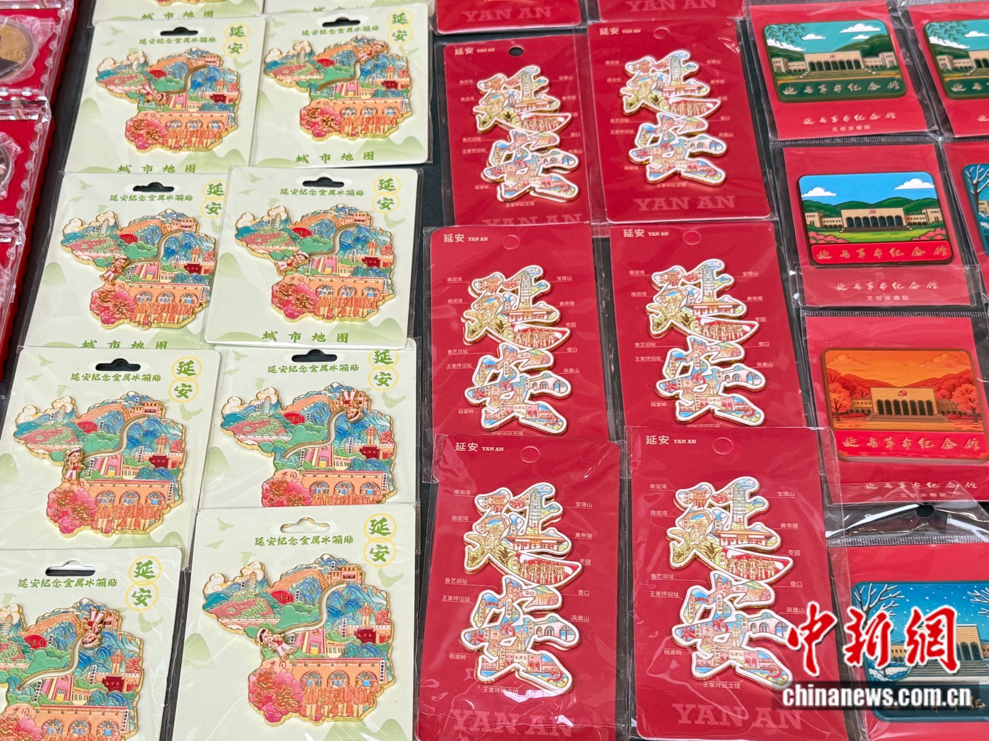 在延安革命纪念馆中的文创店里,带有红色元素的冰箱贴、明信片、帆布包等文创产品玲琅满目,吸引了不少游客参观购买。该馆还推出了盖章打卡活动,以更新颖的方式,让红色文化更加生动有趣,在提高游客参与度的同时促进相关产业发展。