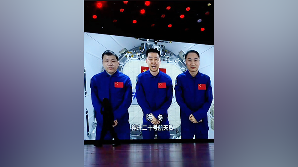 神舟二十号乘组在中国空间站向活动送来美好祝愿。