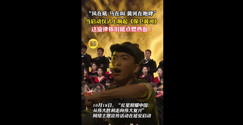 10月18日,“红星照耀中国:从伟大胜利走向伟大复兴”网络主题宣传活动在陕西延安启动。当启动仪式上响起《保卫黄河》,这旋律依旧能点燃热血!谁听到不会被那种磅礴气势所鼓舞啊!1939年光未然作词、冼星海作曲,把抗日军民的热血与斗志,全揉进了每一段旋律里。