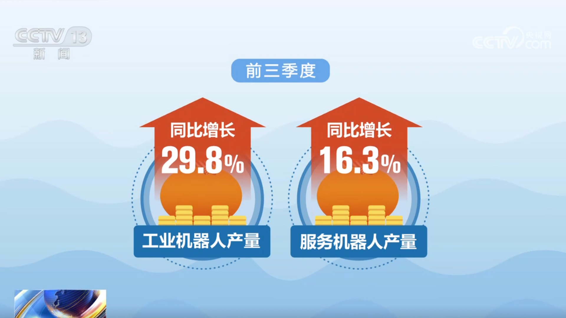 第三季度,我国规模以上高技术制造业增加值同比增速明显快于全部工业;信息传输、软件和信息技术服务业增加值增长11.7%,比上年同期加快1.7个百分点。前三季度,规模以上高技术制造业增加值同比增长9.6%;工业机器人、服务机器人等产品产量分别增长29.8%、16.3%。
