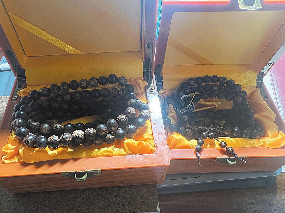 花费9.8万余元在越南芽庄购买的沉香手串。受访者供图