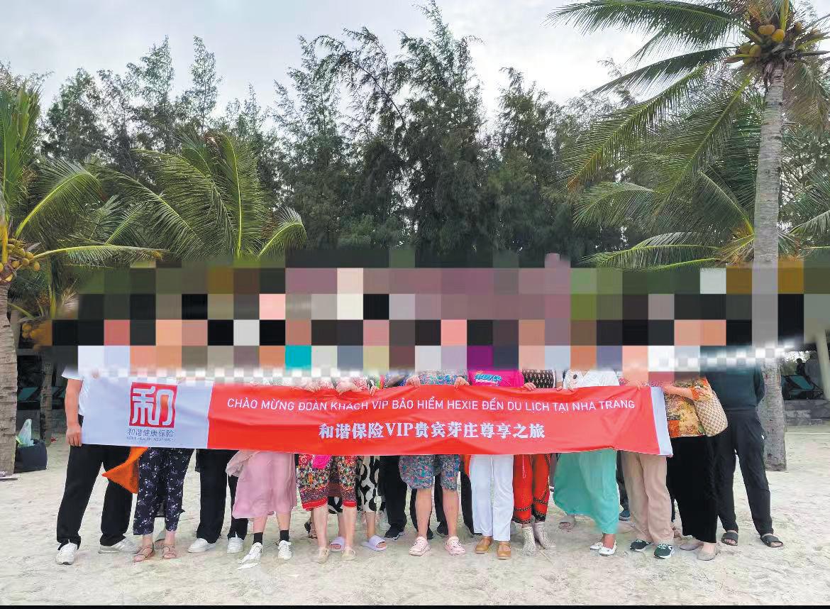 去年12月,家住无锡市的王女士母亲参与了一个由和谐健康保险业务员组织的越南芽庄旅游团。保险业务员通过熟人关系招揽,王女士母亲在未购买过该公司保险产品的情况下,经朋友推荐交费参团。
