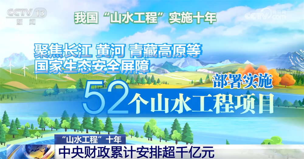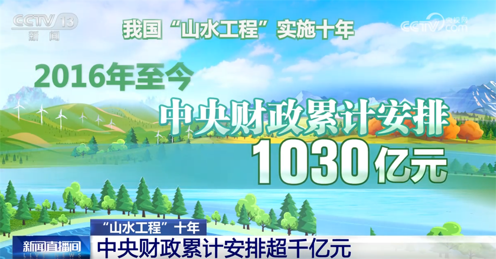 央视网消息:“山水工程”也就是“山水林田湖草沙一体化保护和修复工程”,是践行“山水林田湖草是生命共同体”理念的标志性工程,我国从2016年启动实施到今年正好是10年。这十年间,中央财政累计安排超千亿元,有效支持了我国生态环保发展。
