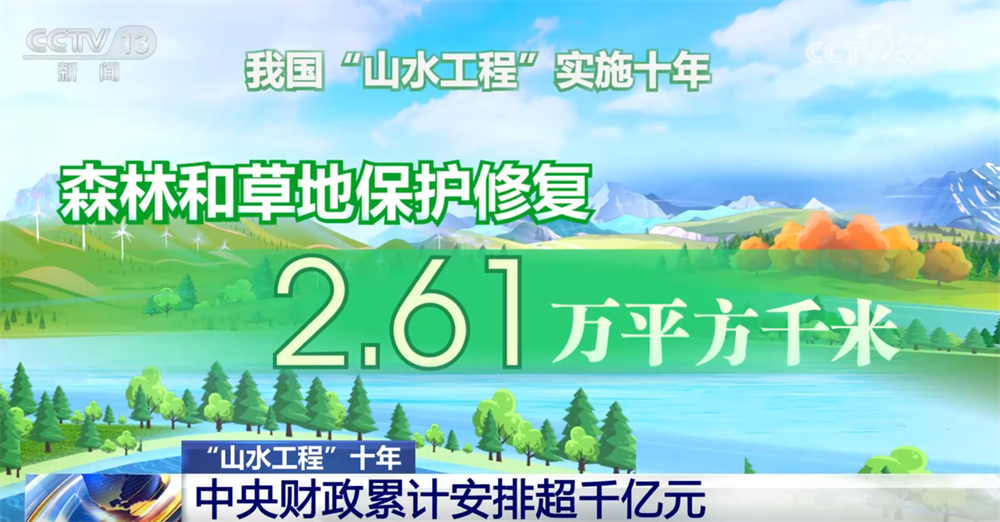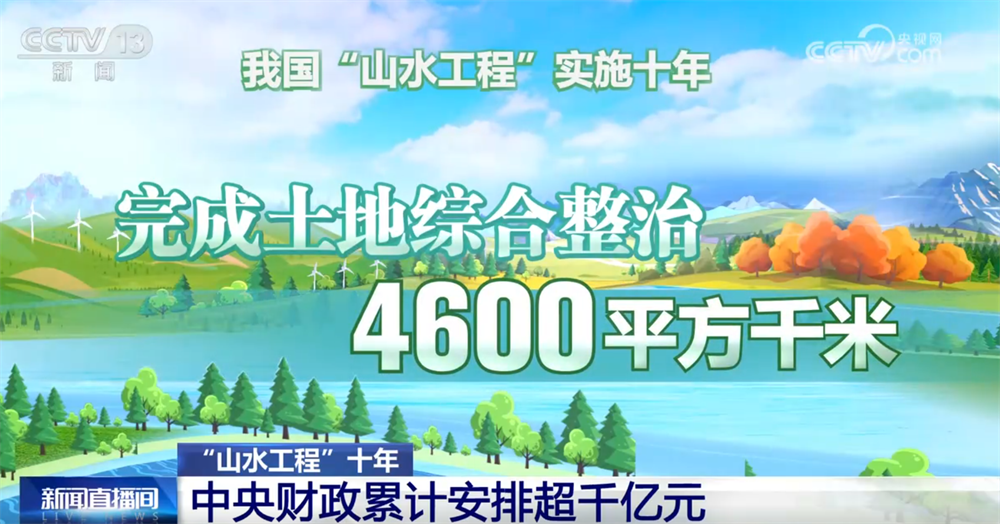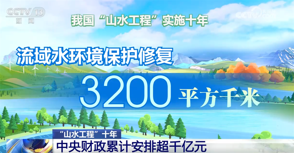十年磨一剑,“山水工程”已经交出了厚厚的生态账本:完成土地综合整治4600平方千米、矿山生态修复1000平方千米、流域水环境保护修复3200平方千米、森林和草地保护修复2.61万平方千米、水土流失治理1.31万平方千米,大大改善了生态环境,促进人与自然和谐共生。