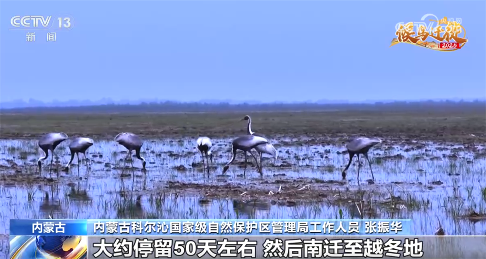 内蒙古科尔沁国家级自然保护区管理局工作人员张振华称:“目前,我们在保护区内监测到了丹顶鹤、白鹤、白头鹤、白枕鹤、灰鹤等41种3万余只候鸟,它们从9月下旬到我们保护区,在保护区内的阿林湖、蒙古店湿地及周边庄稼地里栖息觅食,大约停留50天左右南迁至越冬地。”