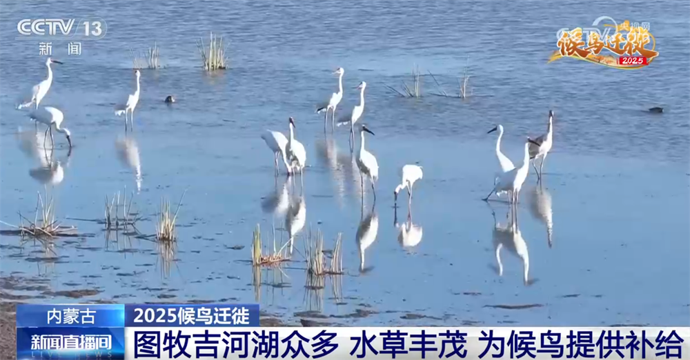 但过去受干旱等多重因素的影响,图牧吉自然保护区也出现了草原退化、湿地萎缩的情况。为改善生态环境,当地实施了“引绰济图”工程,就是把内蒙古第二大河流绰尔河的水引流到图牧吉,“十四五”期间,累计为图牧吉生态补水超1.2亿立方米,通过持续的生态补水,为候鸟栖息生活创造了条件。