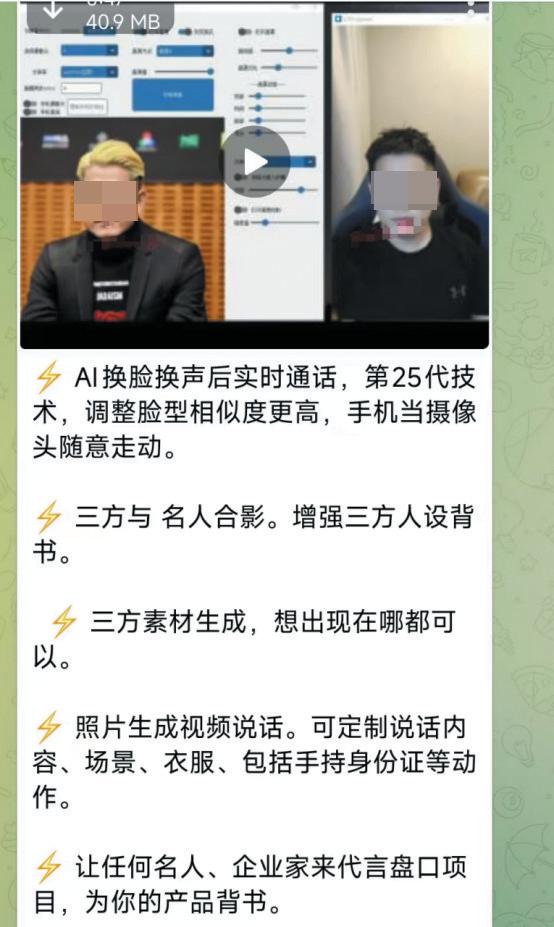 个别黑灰产交易频道上还兜售配合这些技术的专业诈骗软件。“采用我们手机端软件的功能,甚至可以用手机直接拨打视频电话,可配合市面上各种换脸软件,让你的‘客户’找不到破绽,你还可以拿手机随便走动。”有黑灰产卖家表示。