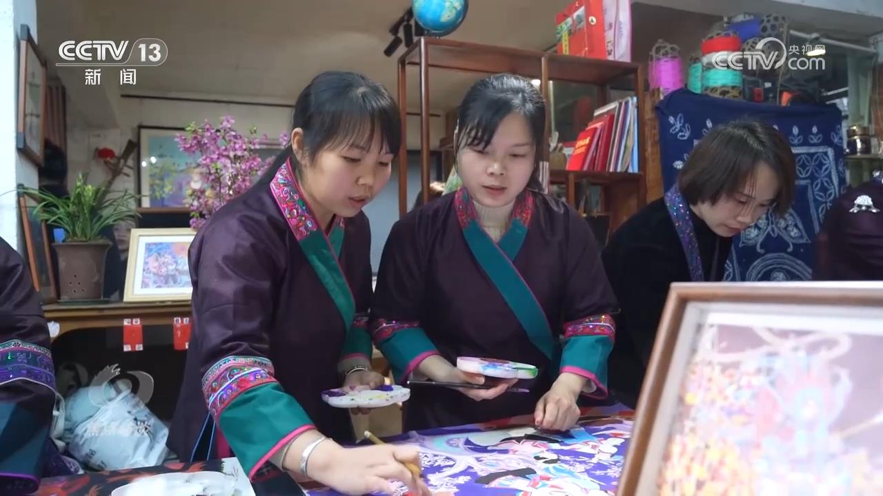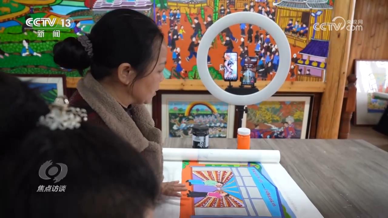 广西柳州市三江侗族自治县委书记贺莹:“有了队伍,怎么能够让农民画创出一番天地呢?我们这几年来,党委政府就是不断地让农民画能够在外面开展一系列的展览,也把外面的一些展览带进来共同展出,促进我们的农民画在国内或者区内外小有名气。”