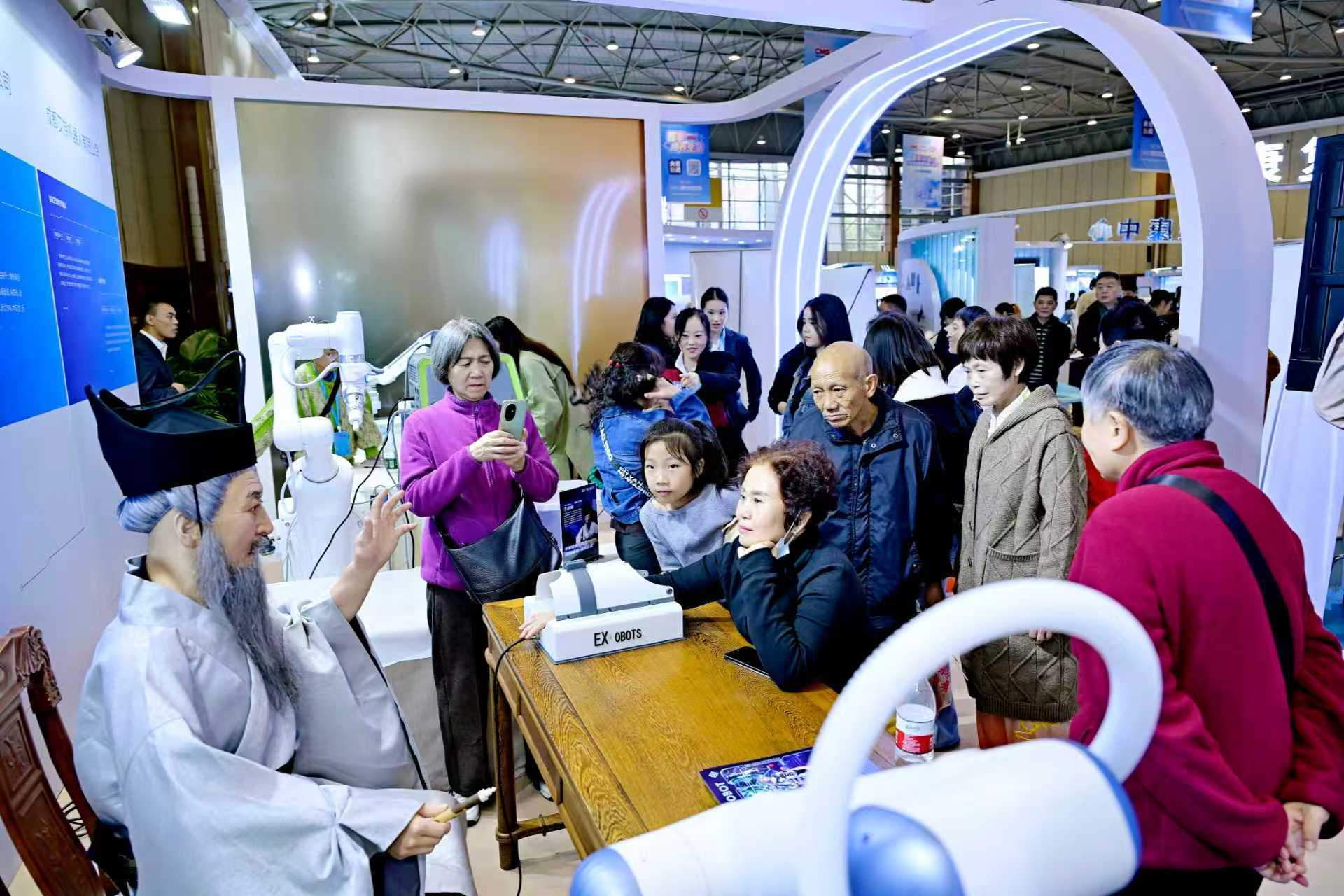 “智享生活馆”呈现了老人在家中日常起居的场景,智能睡眠看护仪、陪伴体验机器人、便捷式智能洗浴机、失能失智老人护理设备一应俱全;“智慧生态园”模拟了一个由人工智能守护的户外社区环境,融合了智慧健身、无人零售、家庭服务移动仿生人形机器人等多款高科技产品;“未来健康中心”则是打造了一个由70款机器人组成的医疗康复保障场景,有中医智能问诊、艾灸、按摩机器人,国内多家企业的外骨骼机器人;“活力中心广场”上,有能打太极、领跳广场舞的机器人,有烹饪美食的烧烤机器人、自主导航无人驾驶零售车……