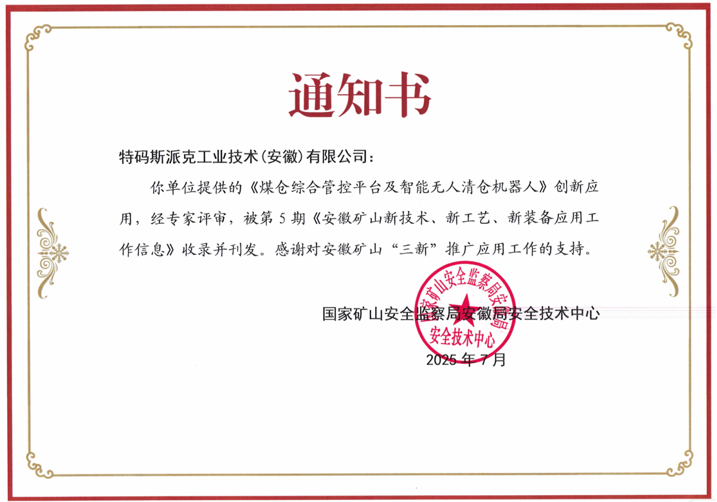 作为该解决方案中的核心设备,智能清仓机器人在2025年入选“国家矿山安全监察局煤矿井下煤仓适用装备十大标杆案例”、获评安徽省“矿山新技术、新工艺、新装备应用”推广装备。目前,该方案已在全国百余个矿井成功应用,在复杂地质条件和多样化仓型环境中均表现出良好的适应性和可靠性。