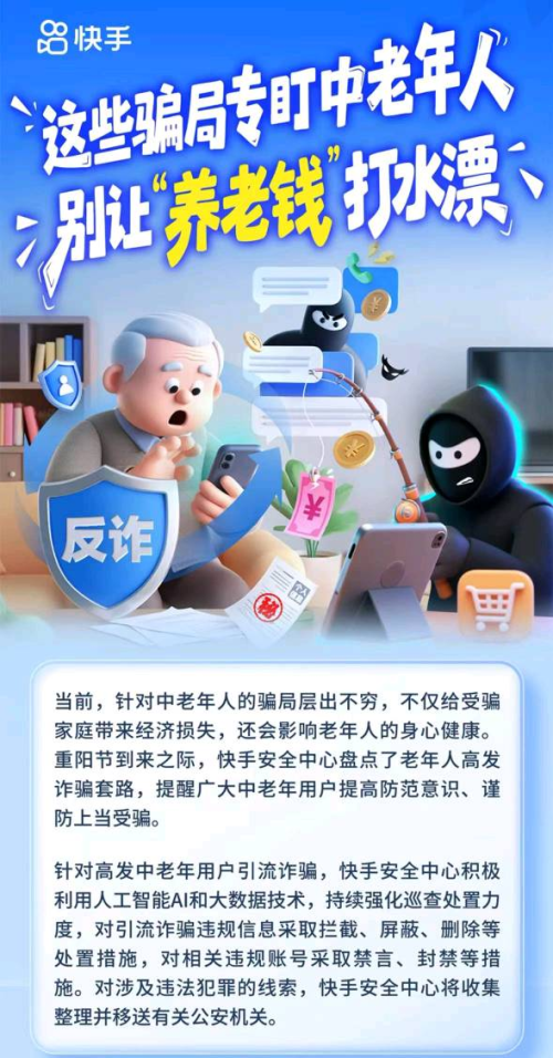 图为快手重阳节反诈提醒和诈骗治理长图截图